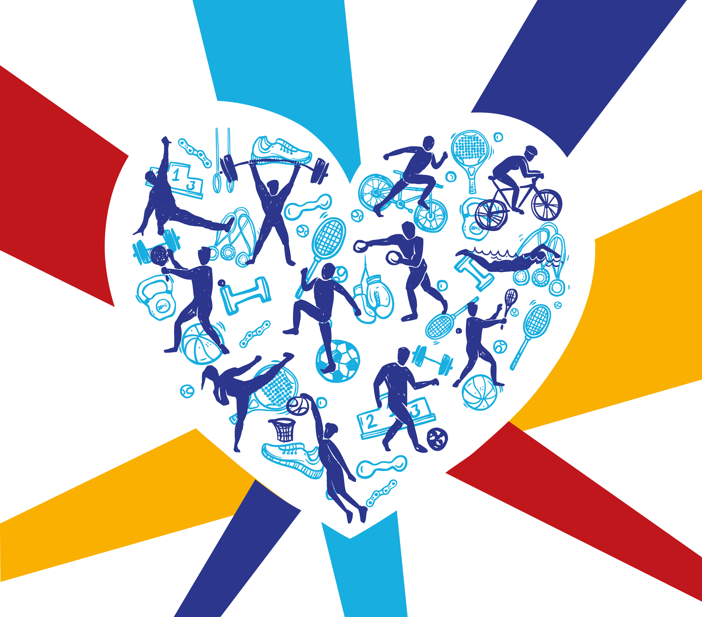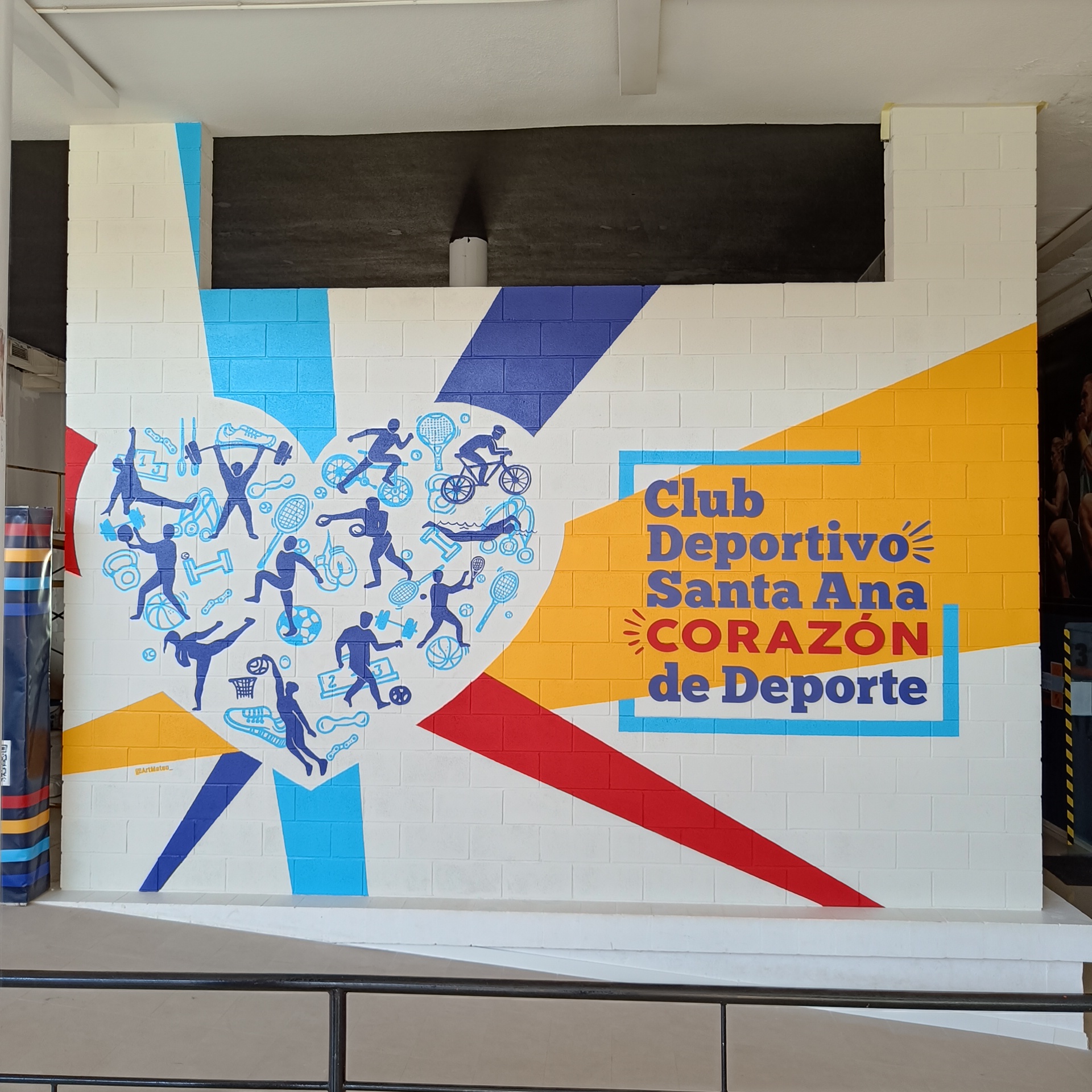 Ilustración realizada para resumir todas las disciplinas deportivas que reune el centro a la vez que sirve de decoración para uno de sus espacios.